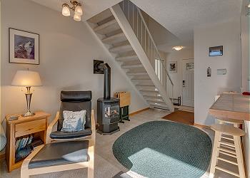 Step inside to find a warm, inviting space with rustic Tahoe touches and modern comforts. The open living area features large windows framing stunning lake vistas, a gas fireplace for cozy evenings, and a fully equipped kitchen ready for home-cooked meals or après-ski snacks.